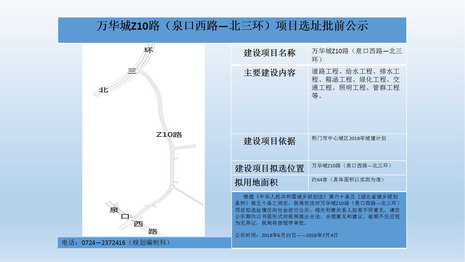 万华城Z10路(泉口西路—北三环)项目选址批前公示